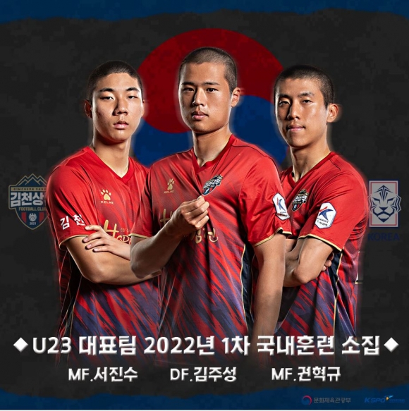 김천상무(대표이사 배낙호) 소속 고승범이 국가대표 명단에, U23 권혁규, 김주성, 서진수가 U23 대표팀 명단에 이름을 올리며 김천상무의 총 10명의 선수가 대표팀에 발탁됐다.대한축구협회(KFA)는 4일, 서귀포에서 진행하는 겨울 훈련에 참가할 U-23 대표팀 명단을 발표했다. 명단에는 김천상무 소속 권혁규(MF), 김주성(DF), 서진수(FW)가 이름을 올렸다.