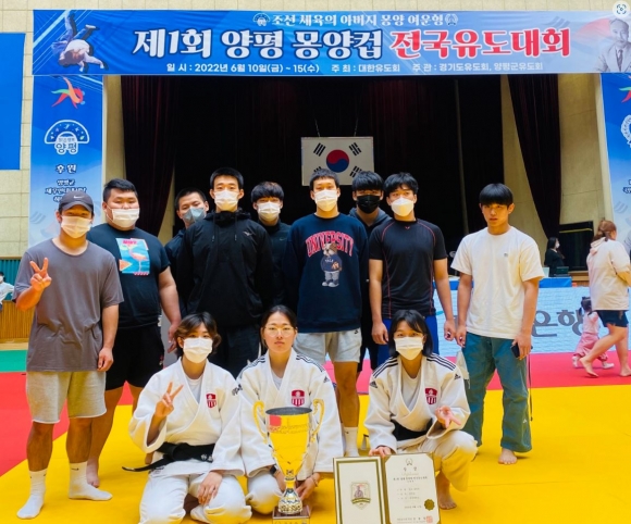 김천대학교 경찰소방학과 김민예, 김혜윤, 이나경(22학번), 2022 양평 몽양컵 전국유도대회 단체전 은메달 입상김천대학교(총장 윤옥현) 경찰소방학과(학과장 김봉수)에서는 지난 6월 10일부터 6월 15일까지 열린 ‘2022 양평 몽양컵 전국유도대회’에서 경찰소방학과 김민예, 김혜윤, 이나경(2022년) 학생이 단체전에서 단체전 여자대학부 은메달에 입상하였다고 21일 밝혔다.김천대학교 유도부(감독 박창용)는 2022년 창단하여 지난 5월 유준(개인전 3위)에 입상 성적에 이어 이번 대회에는 여자 단체전에서 은메달을 획득하는 우수한 성적을 보였다.김천대학교 유도부 박창용 감독은 “어려운 환경과 여건 속에서도 꾸준히 학업과 훈련을 병행해주는 유도부 학생들에게 감사함을 전했으며, 웃음을 잃지 않고 밝게 따라주는 유도부 학생들에게 고맙다고”하였다.김민예, 김혜윤, 이나경 학생은 “창단 첫해의 은메달을 획득하게 되어 기쁜 마음과 경찰공무원의 꿈을 키워주고 지도해주시는 양희철 교수님, 박창용 감독님 그리고 경찰소방학과의 교수님들께 감사인사”를 전했다. |