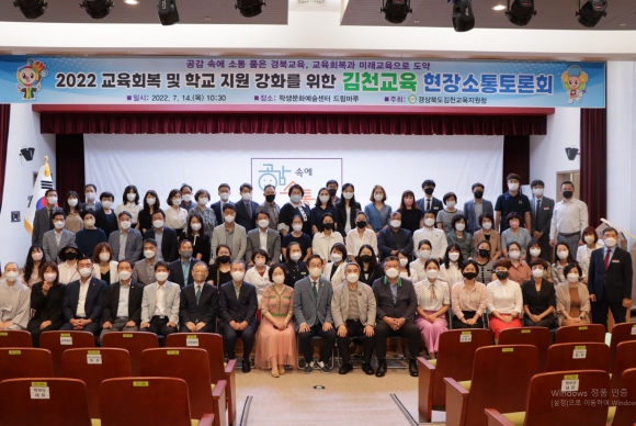 경상북도김천교육지원청(교육장 박삼봉)는 7월 14일(목) 김천 학생문화예술센터 드림마루에서 임종식 경상북도교육감 및 김천 관내 유‧초‧중‧고등학교 교(원)장, 학교운영위원장, 학부모회장, 녹색어머니회, 학생상담자원봉사자회, 교육원로, 유관기관 등 관계자 150여 명을 초청하여 2022 김천교육 현장 소통 토론회를 개최하였다.