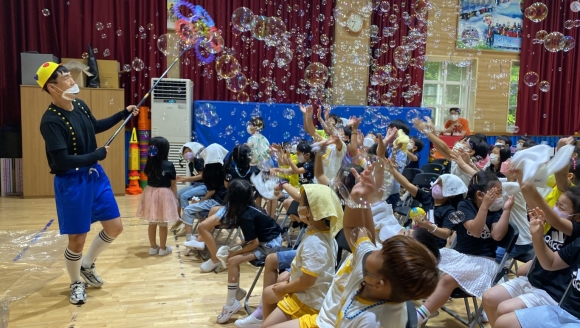 개령초등학교(교장 장준호)는 2022. 7. 20.(수), 7.21.(목), 2일 동안 ‘개령 Summer Festival(여름 축제)’행사를 실시하였다. 무더운 더위에 지친 심신을 시원하게 식혀주고 나아가 학생들이 다양한 즐거움과 행복을 느끼고 스스로 선택한 도전과제를 성취하여 보람을 맛보는 귀한 경험을 가질 수 있는 기회를 제공하기 위해 개령워터파크, 버블쇼, 더불어 마켓, 꿈나눔 발표회 등 다양한 여름 축제 행사를 마련하였다. 7월 20일에는 학교 야외 물놀이장을 설치하여 ‘개령 워터파크’행사를 열었다. 학생과 교직원들이 함께 모여 무더위를 식혀줄 다양한 물놀이 체험 활동을 실시하였다. 대형 워터 슬라이딩부터 물총놀이를 통한 과녁 맞추기 등 활동중심 물놀이를 실시하여 학생들의 웃음소리가 끊이지 않았다. 안전을 위하여 학년군별로 실시된 이 날 체험활동에는 준비 운동부터 정리 운동까지 꼼꼼히 진행되었다.7월 21일에는 도전 성취 과제 발표회인 ‘더불어 꿈나눔 발표회’를 열었다. 학생들이 직접 선택한 도전 과제를 갈고 닦아 각자의 재능을 뽐내고 꿈과 끼를 펼치기 위해 마련된 이번 발표회는 오전 9시 버블쇼를 시작으로 학생들과 교사들 모두가 동심과 추억에 젖어드는 즐겁고 흥겨운 시간을 가졌다. 학생들이 직접 상품을 준비하여 서로의 물건을 사고파는 나눔 행사, ‘개령 더불어 마켓’을 통해 나눔과 자원 절약의 정신을 배우고 경제교육을 함께 하게 되었다. ‘개령 꿈나눔 발표회’에서는 1~2학년들의 방송댄스 시간에 갈고 닦은 댄스공연부터 3~4학년들의 영어뮤지컬, 5~6학년들의 코믹 연극까지 평소 수업시간과 방과후 등 틈틈이 갈고 닦은 실력을 뽐낼 수 있는 소중한 시간을 가졌다. 개령 Summer Festival(여름 축제)에 참여한 학생들 중 5학년 김00 학생은 “정말 정말 신나고 재미있는 축제였어요. 다음에 꼭, 또 했으면 해요.”6학년 이00 학생은 “우리들이 주인공이 되어 행복한 축제를 즐길 수 있었어요.”라고 소감을 말하였다. 개령초등학교는 학생들이 행복할 수 있는 학교를 만들기 위해 앞으로도 이런 학생의, 학생에 의한, 학생을 위한 축제를 지속적으로 운영할 계획이다. |