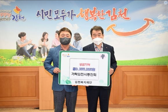 김천복지재단(이사장 김충섭)은 지난 25일 김해김씨 가락김천시종친회(회장 김종철)로부터 기부금 300만원을 전달받았다고 밝혔다.김해김씨 가락김천시종친회는 매년 이웃사랑을 몸소 실천하기 위해 복지시설 자원봉사 및 이웃돕기 성금도 꾸준히 기탁해 오고 있다.이날 전달식에 참석한 김종철 회장은 “경제적으로 힘든 이웃들에게 도움이 되기를 바라는 회원들의 뜻을 모아 성금을 내게 되었다.”며, “앞으로 지역사회 문제에 관심을 가지고 나눔 문화 확산을 위해 노력하겠다.”고 전했다.김충섭 김천시장은 “따뜻한 나눔 활동에 적극적으로 동참해주신 가락김천시 종친회 분들에게 감사하다.”며, “전달된 성금은 지역 내 복지 사각지대에 있는 이웃들에게 희망을 주기 위해 사용하겠다.”고 말했다.한편, 김천복지재단은 지역특성에 맞는 다양하고 신속한 복지서비스를 제공하기 위해 지난해 11월 경북 시군 최초로 설립됐으며 지금까지 200여명의 후원자들로부터 약 5억2천6백여만원의 후원금이 기탁되어 있고, 기탁된 성금은 긴급 지원사업과 희망 복지공동체 지원사업을 통해 어려운 이웃에게 사용될 예정이다. |