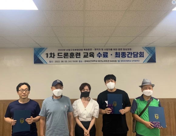 이날 수료식에는 교육수료생 30명, 김천드론교육원 및 경북보건대학교 관계자 등 34명이 참석하였다. 스마트 모빌리티 산업 육성을 위한 재직자 훈련 향상과정은 지난 5월 30일부터 교육생 30명을 대상으로 30일간(총 90시간) 드론 이론교육과 비행 실습교육, 축구드론 조립 및 분해, 항공(드론) 촬영, 드론 영상편집 교육을 진행하였다. 그 결과 교육생 중 초경량비행장치 조종자 1종 자격시험에 합격하여 자격증을 취득하는 성과를 가졌다.현재 드론 교육과정에 참여한 교육생들은 다양한 교육과정 수료 및 자격증 취득으로 4차 산업의 다양한 직업군에 이·전직 또는 고용유지를 할 것으로 기대를 모으고 있으며, 지역거점(김천) 드론 실기시험장 구축 및 쿠팡 물류단지가 김천에 이전함에 따라 사전 협약을 통한 지역의 안정적인 일자리를 제공과 인구 증가를 위한 다양한 노력을 하고 있다.한편, 경북보건대학교 산학협력단은 경상북도청과 성주군이 주관하고 한국전력기술(주)과 한국교통안전공단이 후원하는 ‘성주군 청년스타트업 지원사업’과 김천시가 주관하고 한국전력기술(주)과 한국교통안전공단이 후원하는 ‘청년취업허브 아카데미’, ‘청년스타트업 지원사업’을 수행하고 있다.