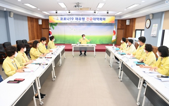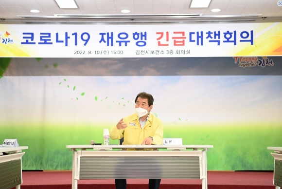 이번 코로나19 긴급 대책회의는 전국적으로 코로나19 확진자가 15만명이 넘어 재유행이 본격화된 상황에서 관내에서도 8월 1주차 일평균 확진자가 전주 대비 85% 증가한 300여명이 발생하는 등 7월 1주 이후 코로나19 재확산 추세가 뚜렷한 가운데 코로나19 방역 대응 사항을 점검하고 실효적인 대책 방안을 마련하기 위해 개최되었다.대책회의에서는 코로나19 확진자 발생현황과 이에 따른 각 부서별 대응상황을 공유하고 감염 취약시설 방역 대책, 위·중증 환자 병상 확보 및 코로나19 4차 백신 접종률 제고 방안 등 재유행에 따른 방역·의료 대책을 논의했다.김천시는 현재 16개인 원스톱의료기관(코로나19 검사, 진료, 치료제 처방까지 모두 가능)을 지속적으로 확충하여 코로나19 확진자 진료에 차질이 없도록 하고, 집단감염 발생에 상대적으로 취약한 요양병원․요양시설 등 감염 취약시설을 대상으로 수시로 방역상황을 점검하고 감염관리 인력의 역량을 강화하는 등 재유행으로 인한 집단감염을 예방하기 위해 총력을 기울일 방침이다.김충섭 김천시장은 “그동안의 방역 노하우를 바탕으로 시민들의 일상생활 회복을 유지하면서도 고위험군 감염예방을 위한 실질적인 방역 대책을 수립하고, 의료대책을 선제적으로 마련하여 시민들의 불편함이 없도록 해줄 것과 시민의 입장에서 코로나19 대응 요령을 충분히 홍보해 줄 것”을 주문했다.이어 “시민들도 증상이 나타나면 가까운 원스톱의료기관에 방문하여 코로나19 진단검사와 진료를 받으시고 마스크 착용, 손 씻기, 잦은 환기, 코로나19 예방접종 등 개인 방역 수칙을 철저히 준수해 줄 것을 당부드린다”고 말했다.