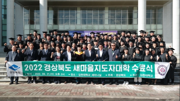 김천대학교(윤옥현 총장)는 21일 김천대학교 세미나실에서 “2022년 경상북도 새마을지도자대학”수료식을 가졌다.