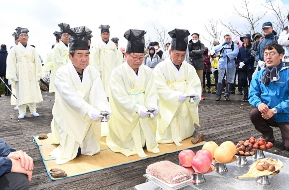 부항면 삼도봉 정상(해발1,176m) 대화합 기념탑에서 무주문화원 주관으로 개최된 기원제에는 김충섭 김천시장을 비롯한 황인홍 무주군수, 정영철 영동군수, 시군의회 의장과 의원, 3도 3시군민 등 1,000여명이 참석해 초헌례와 독축, 아헌례와 종헌례로 삼도화합을 기원했다.
