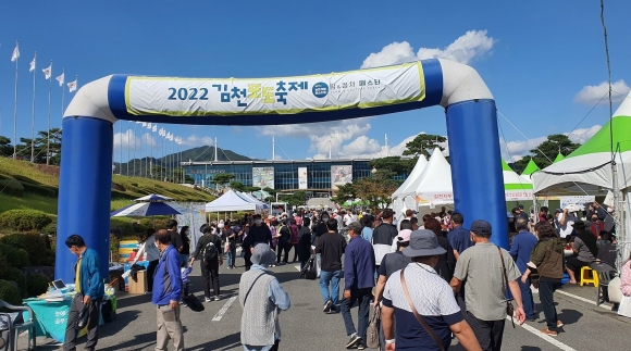 코로나-19로 인해 작년에는 온라인 축제로 개최했으나 3년 만에 대면축제로 돌아온 김천포도축제 행사장에 3일 동안 약 5만 명이 참여하여 선선한 가을 날씨 속에 축제 분위기를 한껏 느꼈다. 축제 주요 이벤트로 금 1돈이 걸린 “황금포도 미로찾기!”는 매회 사전신청을 받자마자 접수가 마감되어 뜨거운 인기를 실감했으며, 빅마마 이혜정의 라이브 커머스, 샤인머스캣 현장판매장, 포도의 달인, 룰렛게임 등 다양한 프로그램을 준비하여 축제 참여객들이 함께 즐길 수 있었다.