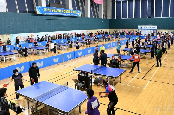지난 22일『2022 김천시장·협회장배 탁구대회』가 실내체육관 배드민턴경기장에서 400여명이 참가한 가운데 성황리에 개최되었다.