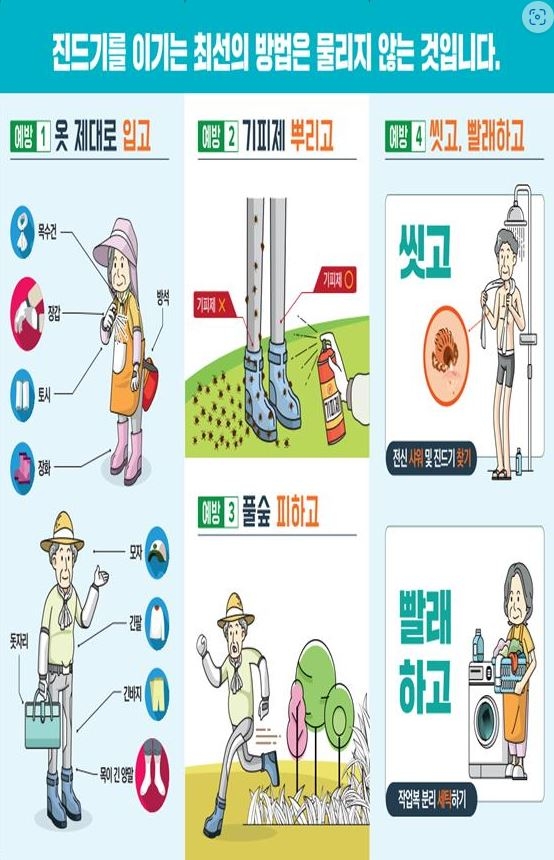 김천시(시장 김충섭)는 추수기 등 야외활동이 많아지는 가을철에 환자 발생이 급증하는 진드기, 설치류(쥐)에 의한 감염병 예방을 위해 농작업 및 야외활동 시 감염병 예방수칙을 준수할 것을 당부하였다.