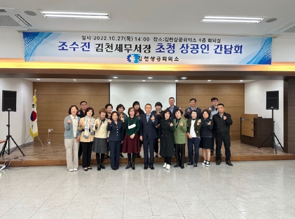 김천상공회의소(회장 안용우)는 지난 10월 27일 오후 2시 본회의소 4층 대회의실에서 「조수진 김천세무서장 초청 간담회」를 개최했다.