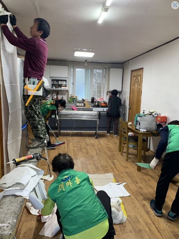 이날 집 고쳐주기 봉사활동에는 새마을협의회 회원 15여명이 참여해 볕이 잘 들지 않아 곰팡이 낀 오래된 벽지와 장판을 교체하고 집안 구석구석 쌓인 먼지와 쓰레기들을 청소했다.