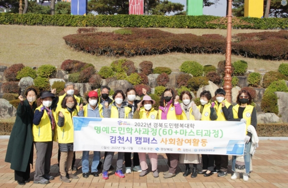 경북도민행복대학 명예도민학사과정(60+마스터과정) 학생들과 경북보건대학교 교직원들은 “경북 최고의 보건 인재 양성 대학으로서의 책임감과 자부심을 가지고 지역상생의 차원에서 앞으로도 코로나19 종식 및 김천시민 안전과 건강을 위해 지속적인 청소 봉사활동을 지속해 나갈 것.”이라 밝혔다.