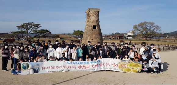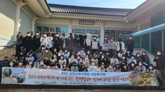 김천교육지원청(교육장 박삼봉)은 11월 25일(금) 경주에서 관내 초·중·고 교사와 학생 65명을 대상으로 ‘경주의 문학과 역사의 발자취를 찾는 선생님과 함께 하는 문학·역사 기행’을 실시하였다.