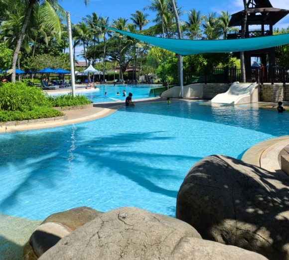공항에서 차량으로 약 40분 거리에 400에이커(약49만평)의 열대우림으로 둘러싸인 판타이 달릿베이 (판타이는 현지어로 해변을 의미) 샹그릴라 라사리라 리조트는 무려 3km 에 달하는 자연비치와 18홀의 달릿베이cc &스파, 3개의 수영장 그리고 6개의 식당과 2개의 바와 라운지 499개의 객실을 갖춘 코타키나발루 최고의 자연 친화적인 리조트 입니다.