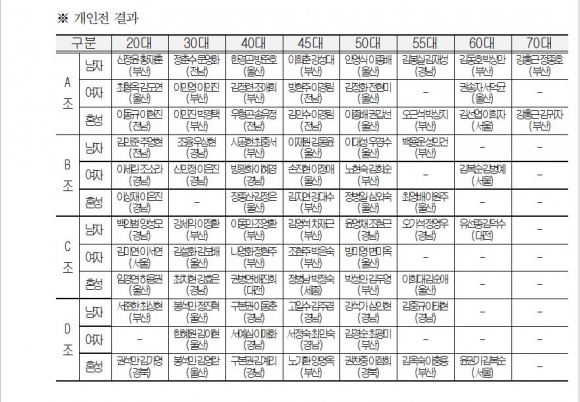 대회결과 단체전 우승은 부산, 준우승 울산, 3위 경남이 각각 차지했으며, 특별상은 제주특별자치도가 차지했다.(※ 개인전 결과: 별첨)