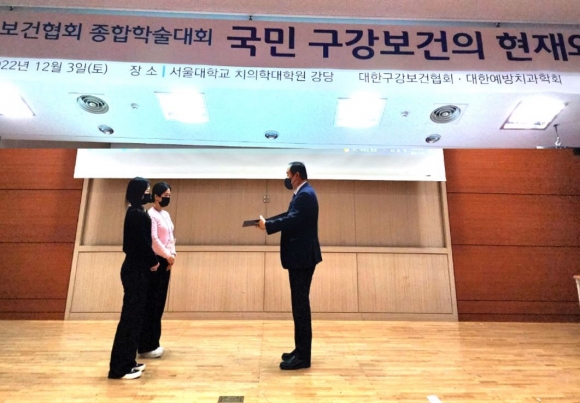 김천대학교(총장 윤옥현) 치위생학과 3학년 김은채, 김혜인, 김채영, 서하늘 학생는 지난 4일 서울대학교 치의학전문대학원에서 개최된 대한구강보건협회 ‘2022 종합학술대회’에서 우수상을 수상하였다고 6일 밝혔다.