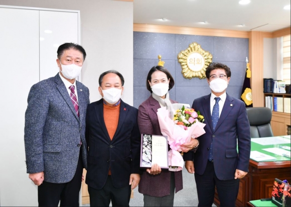 이날 의정회에서는 회의에 앞서 김천시의회 박근혜 행정복지위원장이 경상북도 의정봉상대상 수상의 영광을 안아 이명기 의장이 상을 대신 전달했다.