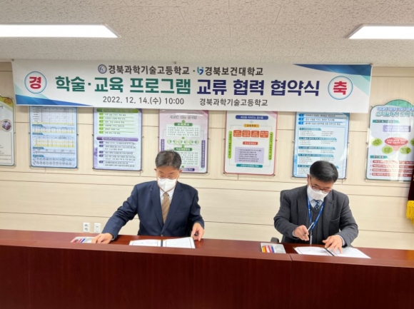 경북보건대학교(총장 이은직)는 12월 14일(수) 경북과학기술고등학교 회의실에서 학술 및 교육 프로그램 교류 협력을 위해 상생 협약을 체결했다.