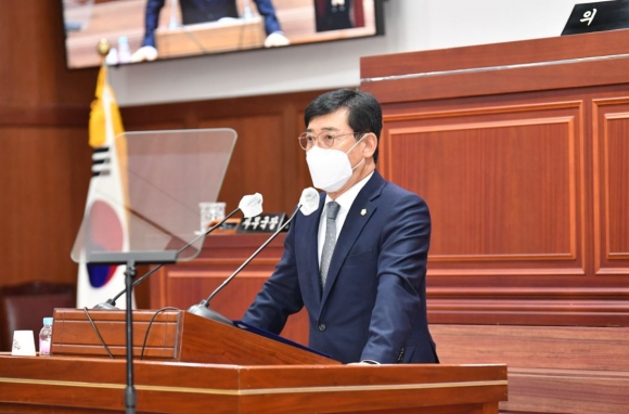 김석조 김천시의원은 12.19일 제233회 제2차 정례회에서 5분 자유발언을 통해 “현행법상 기초자치단체에서 발주하는 100억원 이상의 건설사업의 경우 지역 제한을 두지 않고 조달청 경쟁입찰 방식으로 전국 단위로 계약을 추진하고 있다”면서 “이런 방식으로 계약을 체결한 원청업체의 경우 하도급업체와 개별 계약을 맺으면서 역외 하청 업체에 일감을 몰아줘도 제지할 방법이 없다”고 지적했다.