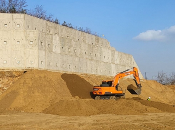 먼저 찾아간 패널옹벽 공사 현장은 현재 토사를 옹벽 중단부까지 쌓아 올려서 대규모로 토사가 유실된 상황은 직접 확인할 수 없었으나, |
