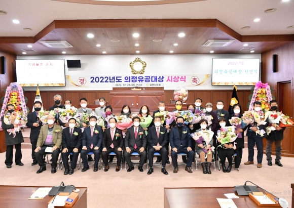 의정유공대상은 한 해 동안 주민화합과 시민복리 증진을 위해 헌신하고 자치의정 활동에 적극 참여하여 열린 의정 실현에 기여한 시민들의 공적을 기리기 위한 상으로, 각 읍면동장의 추천을 받아 김천시의회 공적심사위원회 심사를 거쳐 22명의 수상자와 효심이 깊은 특별상 수상자 2명 등 총 24명이 선정됐다.