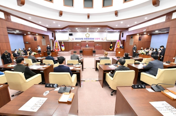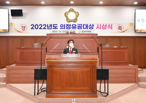 김천시의회(의장 이명기)는 12월 23일 오후 김천시의회 3층 본회의장에서 2022년 의정유공대상 시상식을 개최했다.