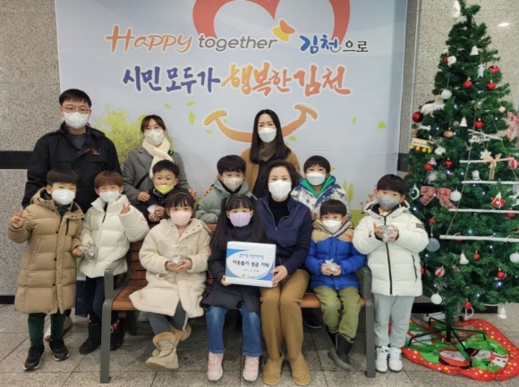 27일 김천시립모암어린이집(원장 조경희)의 원생들이 연말을 맞아 불우이웃돕기에 써 달라며 용돈을 아껴 모은 동전을 자산동 행정복지센터에 전달했다.
