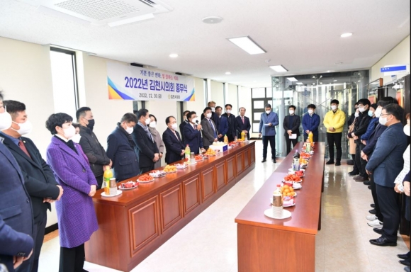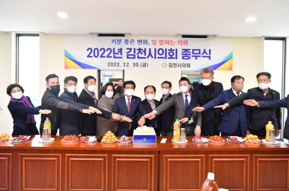 김천시의회(의장 이명기)는 30일 오후 의회 3층에서 2022년 한 해를 마무리 하고 희망찬 2023년을 맞이하기 위한 종무식을 개최했다.