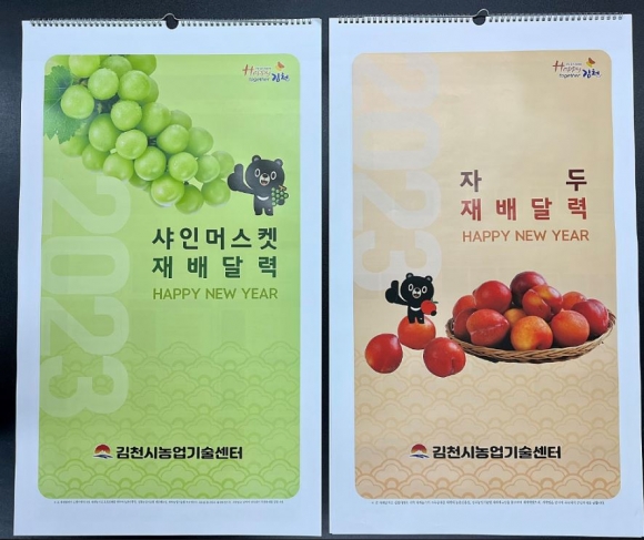 김천시 관계자는 “이번 달력은 2022년 달력에 이어 두 번째로 제작 배부 하고 있으며 고품질 샤인머스켓, 자두 생산에 도움을 주기 위해 제작했다.”라고 말했다. |