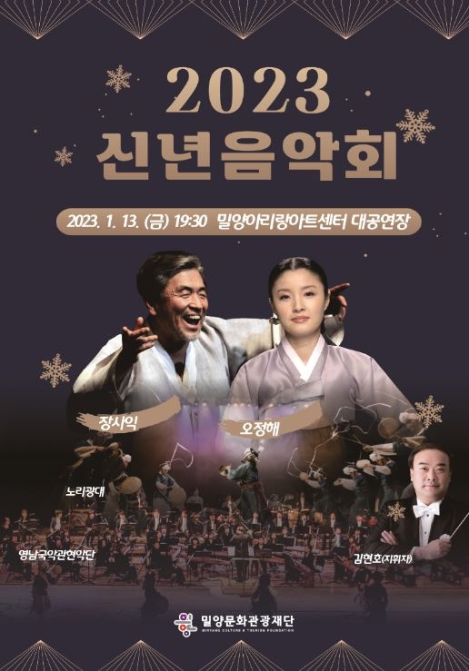 밀양문화관광재단(이사장 박일호, 이하 재단)은 오는 13일 오후 7시 30분에 밀양아리랑아트센터 대공연장에서 2023년 신년음악회 공연을 진행한다.