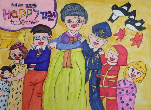 「Happy together 김천」으로 하나 되는 김천인(人) 「Happy together 김천」운동은 친절, 질서, 청결, 참여, 양심, 예절, 배려 7가지 실천 목표를 추진해 소통하고 배려하는 따뜻한 사회를 만들고자 하는 시민 참여 의식 운동이다.