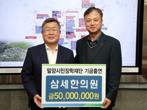 밀양시는 삼세한의원 김기홍 원장이 장학금 5,000만원을 (재)밀양시민장학재단(이사장 박일호)에 기탁했다고 16일 밝혔다.