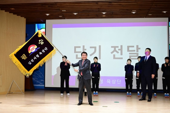 김충섭 김천시장은 “전국 최고 수준의 스포츠 인프라를 바탕으로 송정헌 단장을 비롯한 유능한 지도자들 아래에서 체계적인 훈련과 부단한 노력으로 각종 대회에서 갈고 닦은 기량을 발휘하여 스포츠중심도시로서 자리매김중인 14만 김천시민들의 기대에 부흥하여 주길 바란다.”고 전했다. |