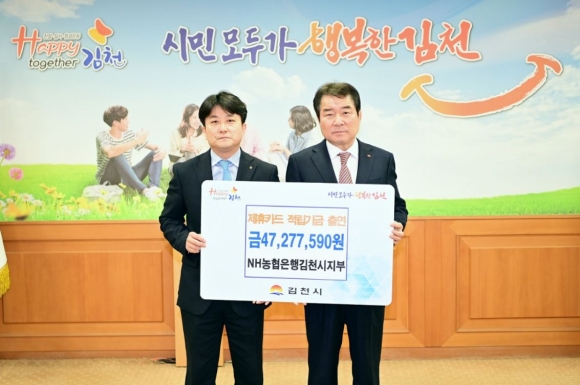 이날 전달받은 기금은 김천시와 NH농협은행 김천시지부 간 업무 제휴로 발급된 김천시 법인카드, 복지카드, 보조금 카드 등의 지난해 사용 실적에 따라 적립된 금액이다.