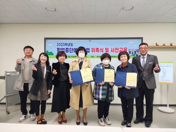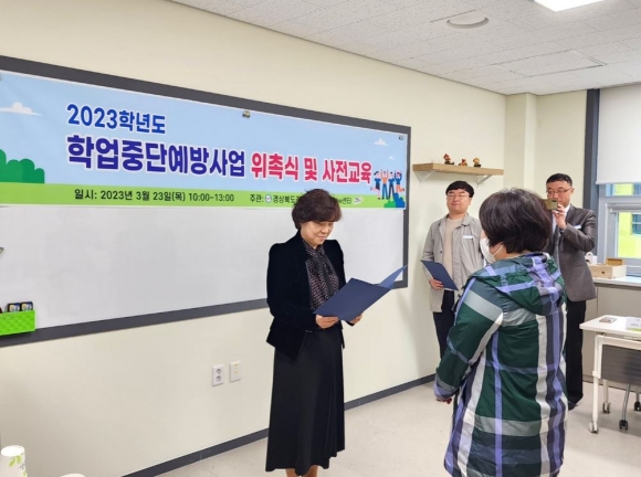 경상북도김천교육지원청(교육장 공현주) Wee센터는 3월 23일(목) 10시부터 김천Wee센터 3층 집단상담실에서 학업중단예방사업 외부지원단 위촉식 및 사전교육을 진행하였다.