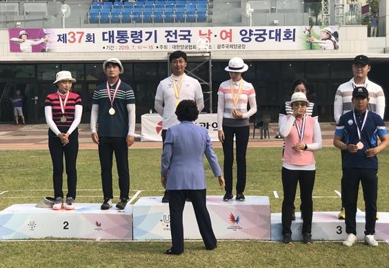 [밝은미래신문=뉴스팀]대구 중구(구청장 류규하)는 중구청 양궁팀(감독:정재헌)이 광주국제양궁장에서 펼쳐진 제37회 대통령기 전국남여양궁대회에서 혼성단체전 우승을 차지했다고 밝혔다. 지난 10일부터 15일까지 펼쳐진 이번대회 마지막날 중구청 소속 구동남은 서구청 소속 최예지와 팀을 이뤄 혼성단체전 일반부 리커브 경기에서 상대팀 예천군청을 5 : 1로 제압했다.