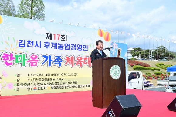 최진호 김천시농영경영인 회장은 “그동안 코로나19로 인해 2018년 이후 5년 만에 개최되는 이번 한마음 가족체육대회가 회원들 상호 간에 그동안 못나눴던 따뜻한 정을 맘껏 나누고 끈끈한 우애를 더욱 돈돈히 하는 소통과 화합의 장이 되길 바란다”고 말하며 올 한해 농사도 열심히 땀흘려 풍년이 들기를 함께 기원했다.