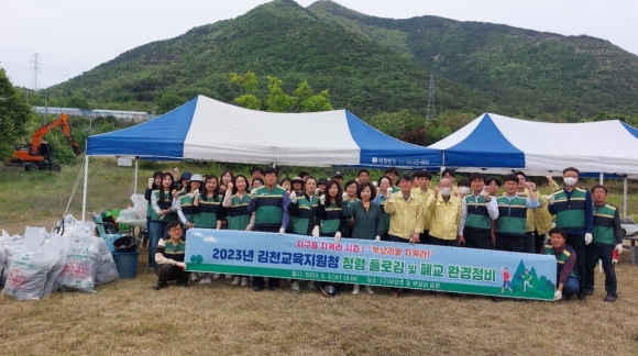 경상북도김천교육지원청(교육장 공현주)은 5월 3일(수) 15시 부터 18시까지 김천시 남면 부상리에 위치한 (구)부상초등학교 부지에서 김천교육지원청 전 직원이 참여한 가운데 폐교 환경정비와 지역 청렴 플로깅을 실시했다.