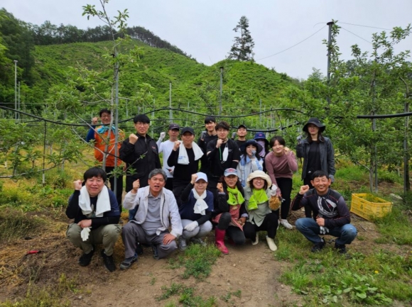 일손 부족을 겪는 사과 농가에 도움의 손길