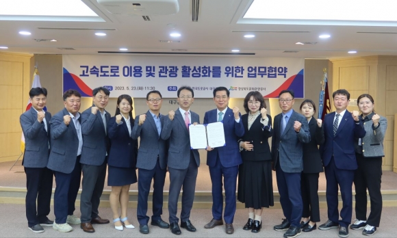 한국도로공사 대구경북본부(본부장 전형석)와 경상북도문화관광공사(사장 김성조)는 5월 23일(화) 지역경제 활성화 및 안전한 고속도로 이용을 위한 업무협약을 체결하였다.
