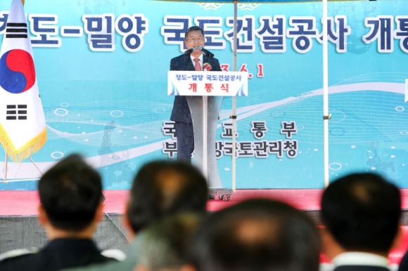 이날 개통식은 진현환 부산지방국토관리청장, 박일호 밀양시장, 김하수 청도군수, 정정규 밀양시의회의장, 김효태 청도군의회의장, 밀양시·청도군의 기관단체장, 지역 주민 등 100여 명이 참석한 가운데 경과보고, 유공자 표창, 축사, 테이프 커팅, 현장 순회 순으로 진행됐다.