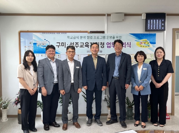 경상북도성주교육지원청(교육장 채종원)은 경상북도구미교육지원청(교육장 이성희)과 6월 12일(월) 구미교육지원청 교육장실에서 학교급식 분야 협업 프로그램 운영을 위한 업무협의식을 가졌다.