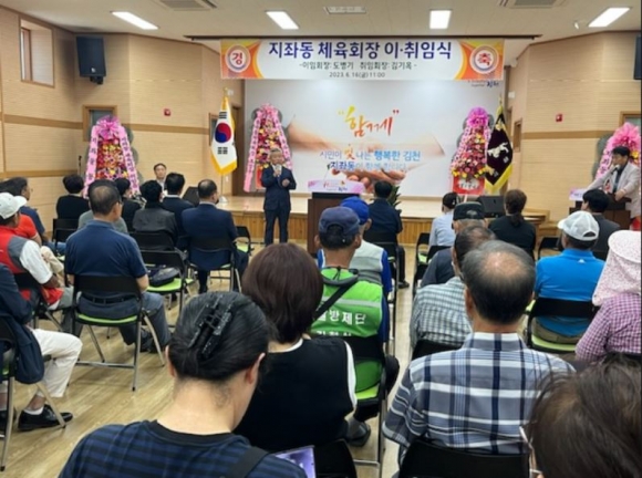 지좌동 체육회(회장 김기옥)은 16일 지좌동행정복지센터 3층 강당에서 지좌동 유관단체 및 지좌동체육회원 등 70여 명이 참석한 가운데 지좌동 체육회장 이취임식을 축하와 화합의 장으로 성황리에 개최했다고 밝혔다.