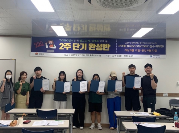 김천시가 지원하고, 경북보건대 산학협력단(총장 이은직)이 운영하는 ‘김천시 청년센터’는 김천 청년 10명을 대상으로 6월 12일부터 6월 23일까지 총 10일, 30시간 동안 운영한 토익 특강이 성공적으로 마무리되었다고 26일 밝혔다.