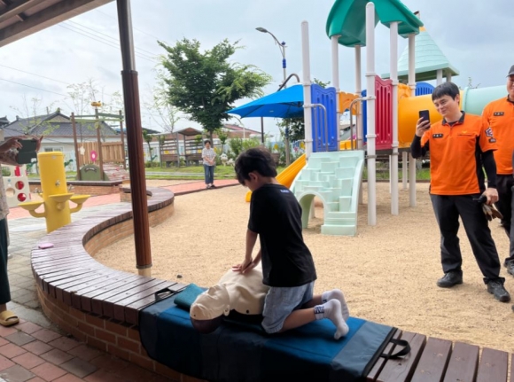 ◈ 더불어 소방관이 심폐소생술 하는 방법에 대해 알려주어 유아들이 직접 애니를 이용한 심페소생술 실습을 하여 나와 소중한 생명을 살리는 경험을 해보았다. 또한 교직원들은 기관에 있는 소화전 및 소화기 사용법에 대한 교육에 참여하였다.