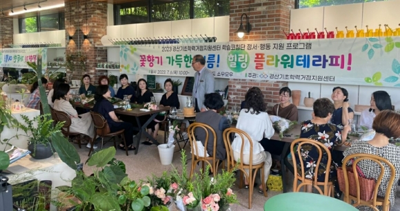 경산교육지원청(교육장 이양균) 기초학력거점지원센터에서는 2023년 7월 6일(목) 경산·청도 지역 학습코칭단 26명을 대상으로‘꽃향기 가득한 여름!-힐링 플라워테라피’라는 주제로 연수를 진행하였다.
