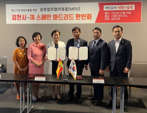 수출상담회 개최에 앞서 스페인 마드리드 한인회(회장 이인자)와 업무협약(MOU)을 체결한 김천시는, 세계화 시대 마드리드 한인회와 다양한 우호 증진을 바탕으로 향후 스페인 시장을 넘어 유럽권 新 시장 개척을 위해 상호 협력하기로 협의했다.
