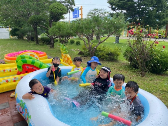 물놀이 활동 전 교실에서 유아들과 물놀이 안전사고 예방교육과 안전한 물놀이 방법을 알아보고, 준비운동을 한 뒤 물놀이 및 물총놀이 시간을 가졌다. 이번 물놀이는 유아들이 여름을 더욱 즐겁게 보낼 수 있도록 마련한 것으로 물놀이를 통해 유아들은 더위에 적응하며 체력을 키우고 즐기는 시간이 되었다.