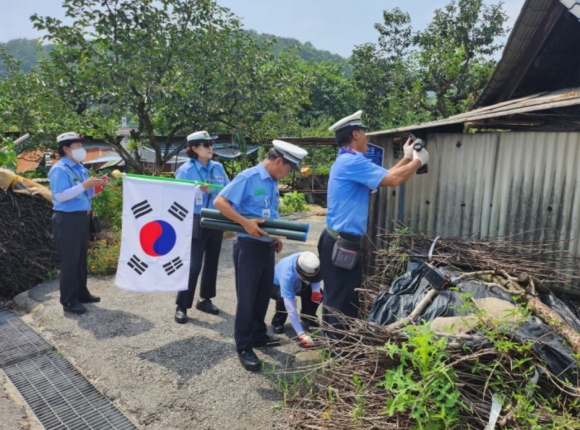 새마을교통봉사대 김천시지대(명예회장 정호동)에서는 14일 제78주년 광복절을 맞이하여 양천동 일원에서 10여 명의 회원이 참여한 가운데 “나라 사랑 태극기 달아주기” 행사를 했다.