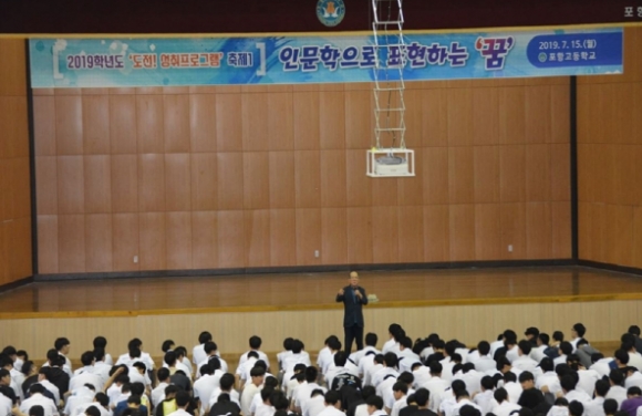 [밝은미래신문=뉴스팀]포항고등학교(교장 김용국)는 7월 15일(월) “인문학으로 표현하는 꿈”이라는 주제로 꿈 축제를 실시하였다. 인문학과 관련한 도전과제에서 1단계를 인증 받아야 참가할 수 있는 이 축제에 총 209명의 학생이 참여하였다.