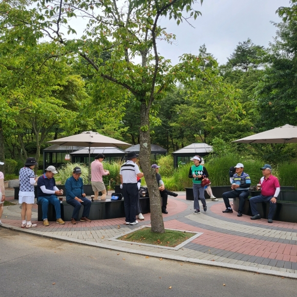 한편 대회가 끝난 뒤 진행된 2부 행사에 앞서 들국화 부부 골프 모임에 제8대 회장이신 안진부 회장께서 인사말을 통해 오늘 “천혜의 자연환경을 갖춘 신라cc에서 들국화 회원님들의 인덕으로 햇빛도 한 점 없이 가랑비가 살살 내리는 날씨 속에 경기하기에는 안성맞춤이었다”면서 회원들이 밝고 기뻐하는 모습에서 성곡적인 회장배였음을 실감할 수 있다고 인사말을 통해 밝혔다.